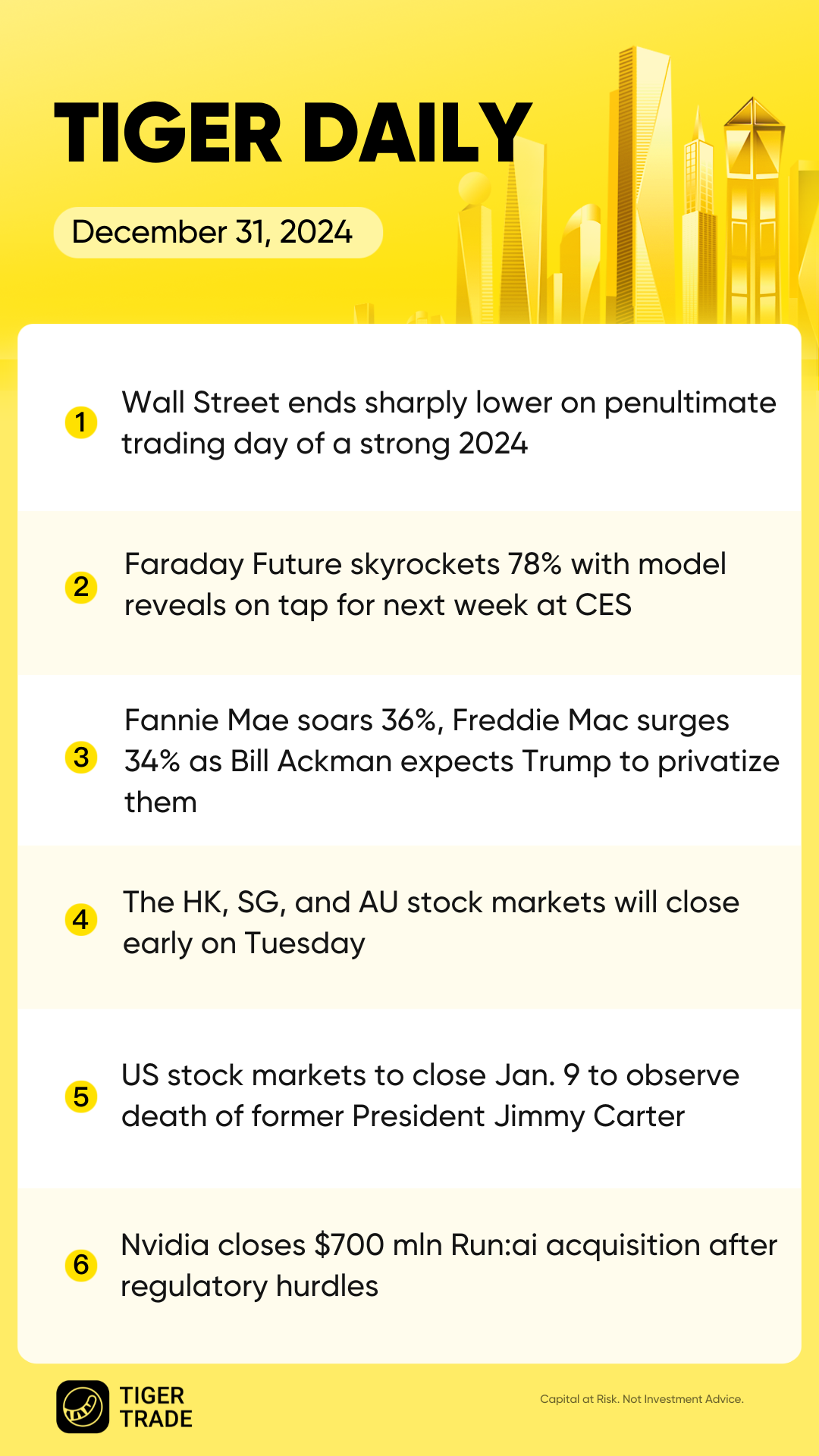 Faraday Future - Faraday Future soared 78.4% Monday on reports that the Faraday Future FX prototype car will be unveiled at CES 2025 in Las Vegas on January 5-7. The company is also expected to provide a strategy update at CES.