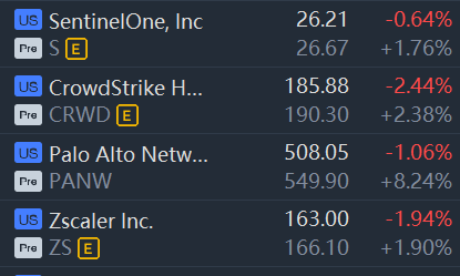 Shares of several cybersecurity companies are trading lower in premarket trading Tuesday after Palo Alto Networks Inc (NASDAQ:PANW) shares jumped on the company's better-than-expected financial results. Palo Alto also issued strong guidance and announced a three-for-one stock split. Palo Alto Networks, SentinelOne, CrowdStrike and Zscaler climbed between 1.7% and 8.2%.