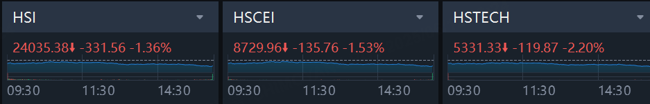 XPeng down 6.7%; BYD, NIO down over 4%; Alibaba, Xiaomi down over 3%; Meituan, JD.com down nearly 2%.