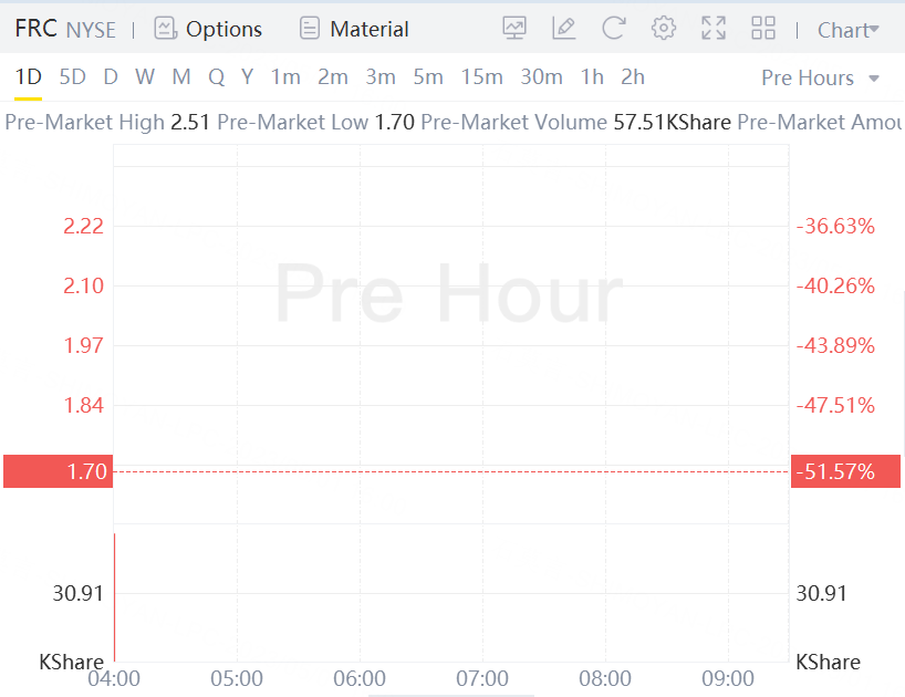 Shares of First Republic Bank dropped over 50% in premarket trading.