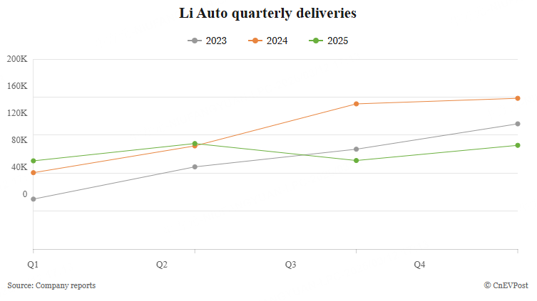 Notably, Li Auto still posted an operating loss of 442.6 million yuan for the quarter, compared with an operating income of 3.7 billion yuan a year ago and an operating loss of 1.2 billion yuan in the third quarter of 2025.