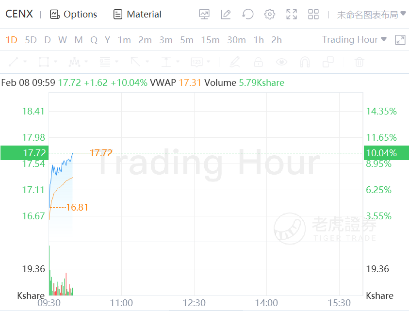 Aluminum Stocks Surged with Century Aluminum Shares Soared Over 10%. Alcoa stock Surged over 9%.