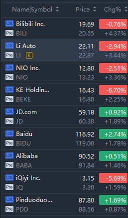 Hot Chinese ADRs continued to rise in premarket trading; Bilibili Inc. and NIO Inc. jumped over 3%.