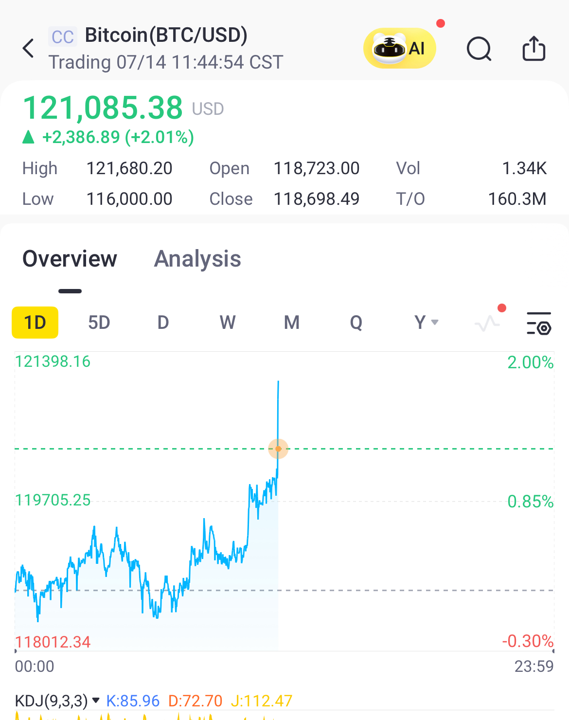Bitcoin climbed to a fresh all-time high of more than $121,000 on Monday, buoyed by optimism over growing institutional adoption and ahead of a highly anticipated "Crypto Week" in Washington, starting later in the day.