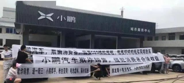 7月13日,小鹏汽车遭遇了最大的危机,一大波车主跑到小鹏汽车总部,各个城市的服务中心,拉起横幅维权,控诉小鹏汽车涉嫌消费欺诈。