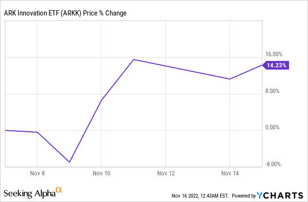 In the past week, the ARK ETF (ARKK) is up more than 14%. It's made more than 1-years normalized return in a week. What the market is saying is that unprofitable businesses have been hit too much, and are worth more than they presently trade for.