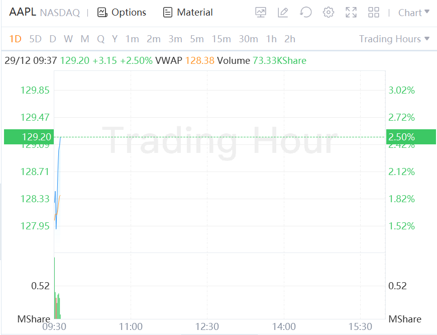 Apple Stock Rises 2.5% in Morning Trading, After Dropping 3% to a 52-Week Low on Wednesday