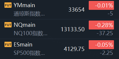 4月10日,美股指期货弱势震荡,截止发稿,道指期货跌0.01%,纳指期货跌0.28%,标普500指数期货跌0.05%。