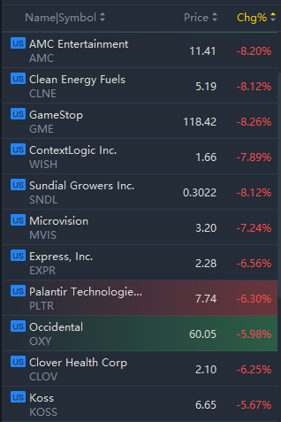 Meme stocks declined in morning trading, with AMC and Gamestop falling over 8%.