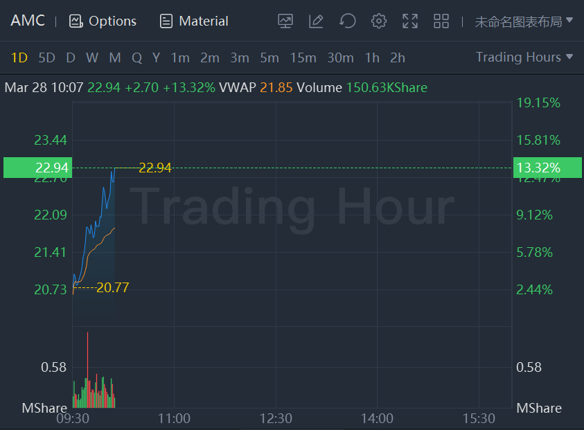 AMC stock surged more than 13% in morning trading after the company's CEO Adam Aron discussed potential future investments to capitalize on the interest of retail investors.