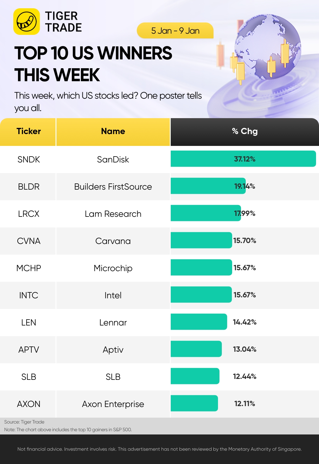 Below are top 10 S&P 500 stock gainers for the week ended Jan 9: