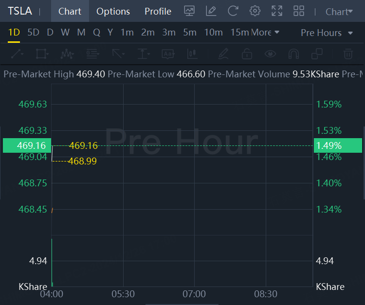 Tesla Stock Gains 1.5% Premarket After a 7% Rally in Prior Session