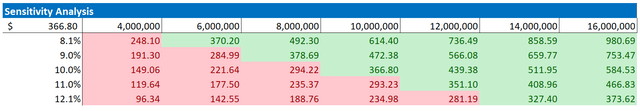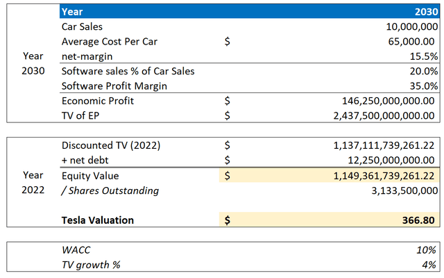 Personally, I see no reason to change the long-term business outlook for Tesla post-Q3. And accordingly, I continue to believe that Tesla should be valued at about $367/share - with clear upside skew for the sensitivity analysis. My base case remains anchored on 10 million car unit sales by 2030, an ASP of $65,000, a 15.5% net margin, and 20% of software sales as a percentage of car sales revenues.