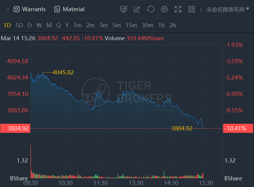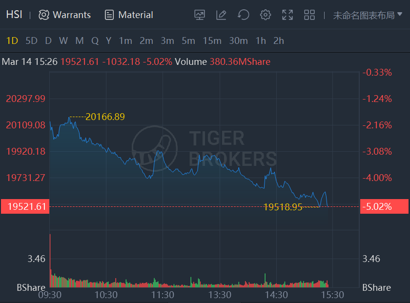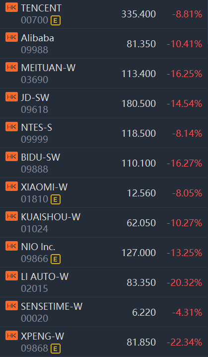 Hong Kong stock market plunged on Monday, with the Hang Seng Index down more than 5% and the Hang Seng Tech Index down more than 10%.