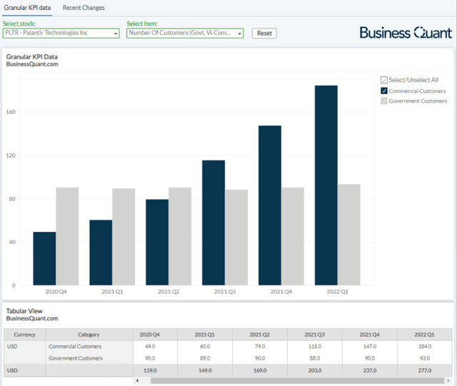 Third, Palantir’s commercial revenue growth momentum is likely to continue in the foreseeable future as well, and the segment is likely to become a major growth driver for the company as a whole. See, Palantir has been adding customers at a rapid rate. Its commercial customer count in Q1 was up 205% year-over-year whereas its commercial revenue was up 56% in the said time frame.