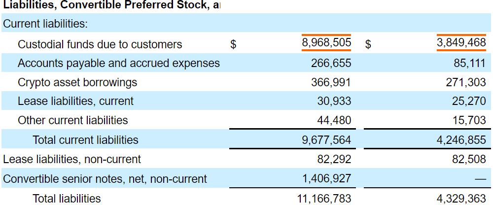 I am not worried about Coinbase’s financial obligations. Take into account that the company’s net debt is equal to -$2.5 billion, so there is cash in hand to pay the financial debt: