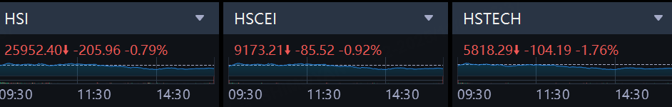 Hong Kong stock market fell on Tuesday. The Hang Seng Index (HSI) decreased by 0.79%, the Hang Seng Tech Index (HSTECH) also dropped by 1.76%.