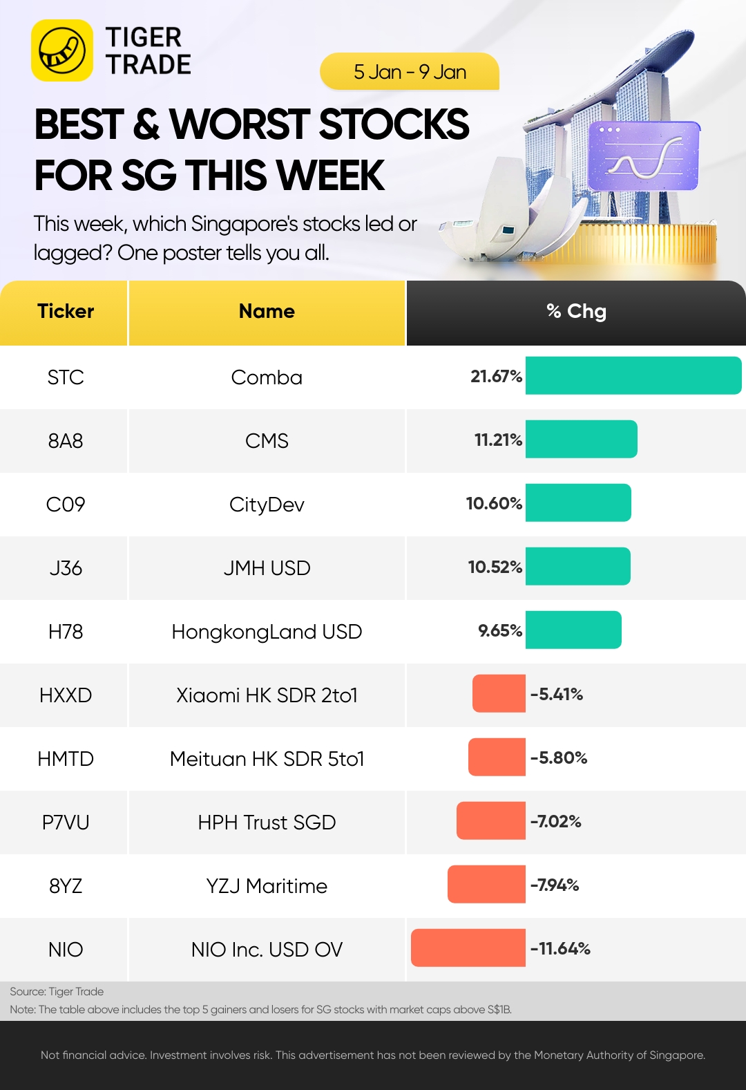 In terms of individual stocks, Comba rose 22%; CMS, CityDev, JMH USD rose 11%; NIO Inc. USD OV fell 12%; YZJ Maritime fell 8%.
