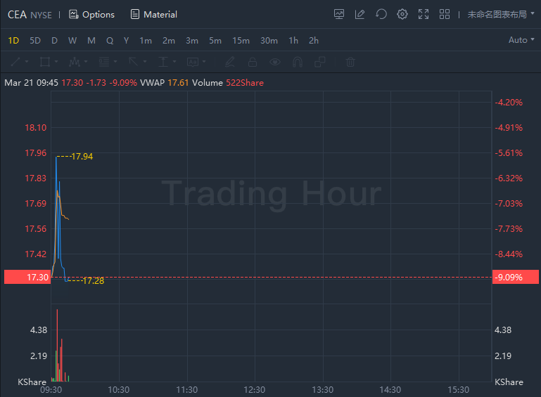 China Eastern Airlines, Boeing Fell 9% and 5% Separately in Morning Trading