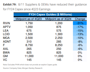 Going forward, we believe a major industry-level 'step change' on spending may need to be catalyzed by greater industry pressure/weakness. In 2025, we would expect modest incremental adjust-ments to investment spend in the event of further volume deterioration or other industry headwinds. However, over the medium/long term, we still see the potential for significant share-holder value creation from autos companies re-thinking capital spend in the way of more strategic adjustments to core business strategies (Greater partnership with startups/China, Greater capital austerity, De-emphasizing non core businesses, etc.).