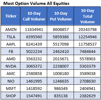 SHOP is on a list of stocks that have attracted the highest weekly options volume.