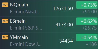At 8:34 a.m. ET, Dow e-minis were up 186 points, or 0.54%, S&P 500 e-minis were up 9 points, or 0.22%, and Nasdaq 100 e-minis were up 39.75 points, or 0.32%.