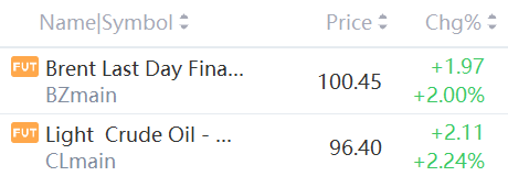 Brent Oil Futures Climbed 2% to 100.45 a Barrel; WTI Oil Futures Gained 2.24%