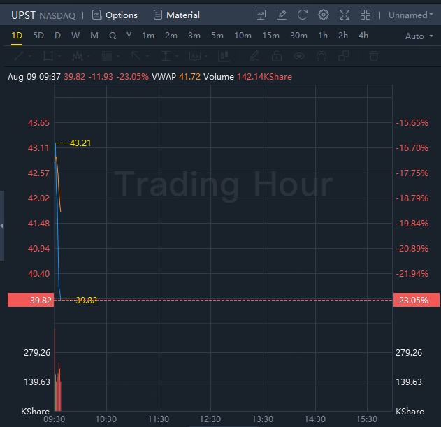 Upstart Holdings, Inc. tumbled over 23% in morning trading as its revenue and earnings missed forecasts for the current quarter.