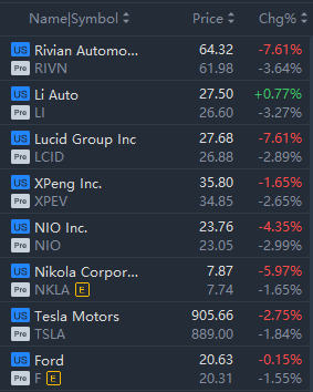 EV Stocks Continued to Crash in Premarket Trading, with Rivian and Li Falling Over 3%
