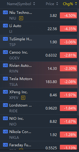 EV stocks remained low in morning trading; Niu Technologies slipped nearly 5% while Rivian Automotive, Inc. and Tesla Motors slipped over 2%.