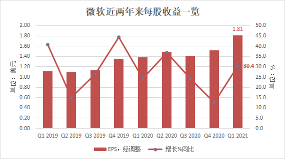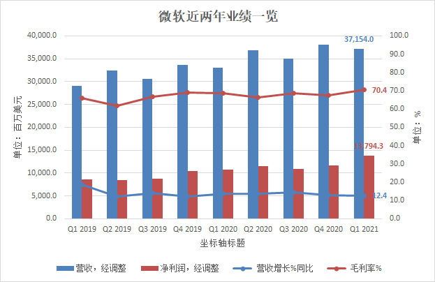 Q1财季微软的业绩算是中规中矩,营收、净利润及各部门细分收入高于市场预期。营收方面,Q1财季微软营收371.54亿美元,同比增长12.4%,再次超出华尔街预期;调整后净利润137.94亿美元,同比增长30.7%;调整后每股收益1.81美元,同比增长30.4%,增速创2020年新高;此外,微软毛利率也毛利率创新高至70.4%。