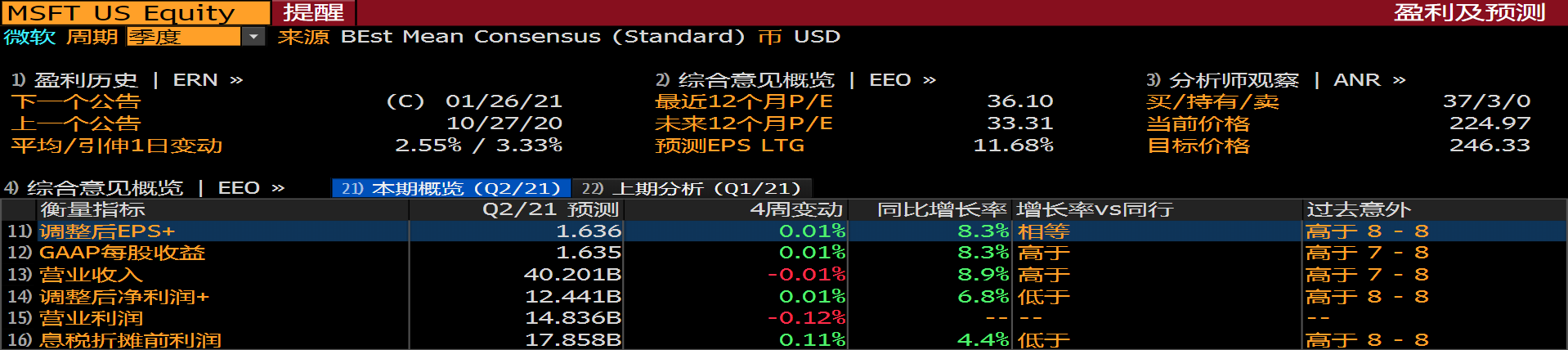 1月20日拜登就职总统之后,大型科技股迎来一波上涨。微软当日涨超3%、谷歌涨超5%。除了消息面的刺激,微软也将于1月26日周二美股盘后(北京时间1月27日周三早间)公布2021财年Q2财季财务报告(截止2020年12月30日),在上一季度主要财务指标超出市场预期后,本季度,微软业绩有望超出市场预期吗?Azure云业务增速能否回归高速增长?