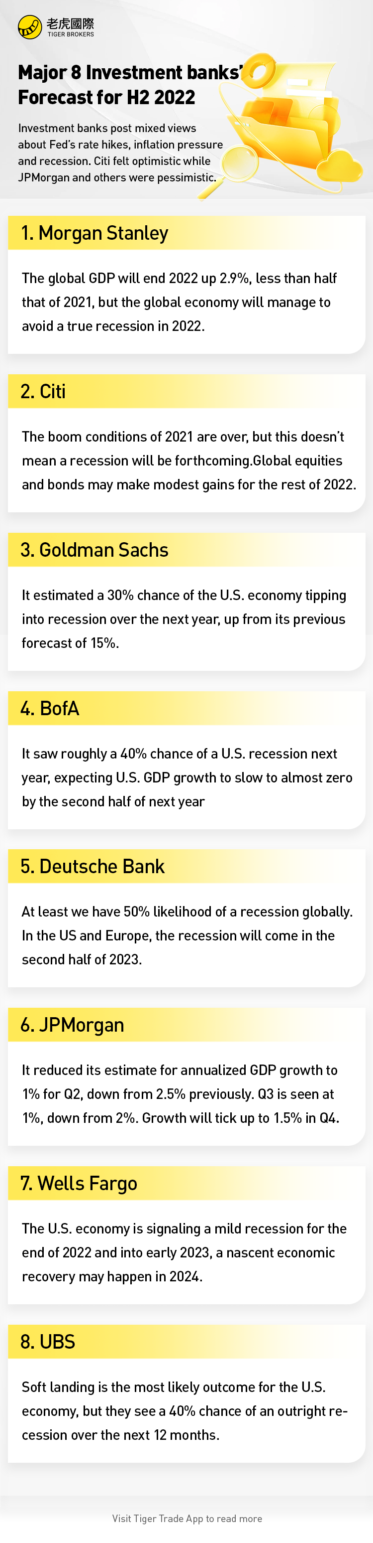 Fed’s rate hikes, inflation pressure and recession were the key issues in H1 2022. What do investment banks think of these issues in H2 2022? Citi felt optimistic while JPMorgan and others were pessimistic.