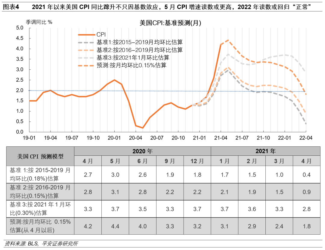 我们预计,2021年5月美国CPI环比增速有望放缓,下半年CPI同比可能明显下降,2022年CPI有望回归“正常”。