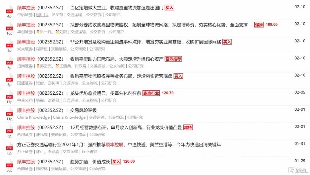 股价逼近券商近期给出的最高目标价的还有顺丰控股,2月10日顺丰控股涨停,股价收于117.10元,超过了华创证券10日研报给出的109元目标价,逼近中金公司2月5日给出的120.7元目标价。