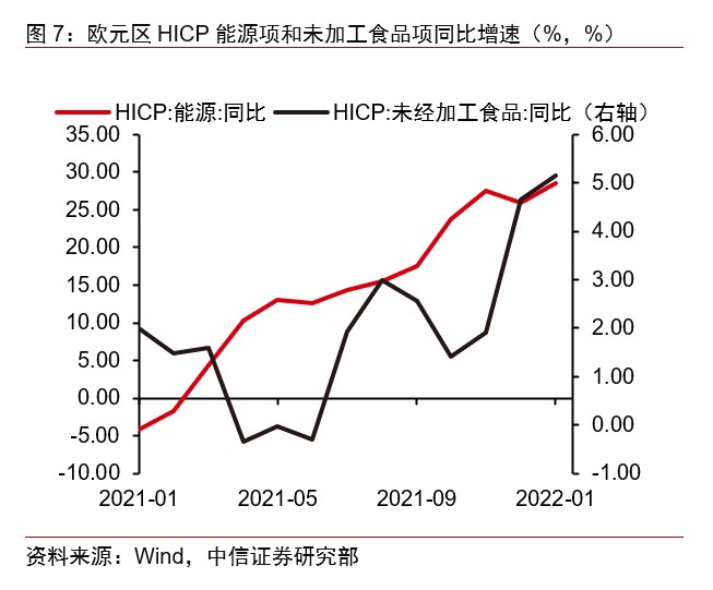 1月欧元区调和CPI同比增长5.1%,创历史新高,远高于市场预期,核心调和CPI同比增速则较上月有所回落。1月欧元区HICP同比增速达5.1%,远高于市场预期的4.4%,继2020年12月达到5.0%以后,继续居高不下。从分项看,能源项是推升欧元区HICP的主要因素,1月能源项价格同比上涨达28.6%,而未经加工食品价格同比上涨5.16%。剔除能源和食品因素后,1月欧元区核心HICP同比增速为2.3%,较上月有所回落,但仍然超出市场预期。