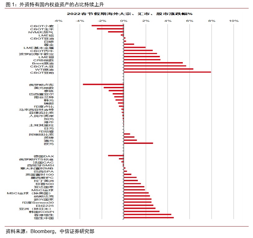 春节假期期间全球风险资产较节前略有回暖,市场投资的主线围绕能源供给、企业财报盈利以及主要央行货币紧缩预期展开。其中,
