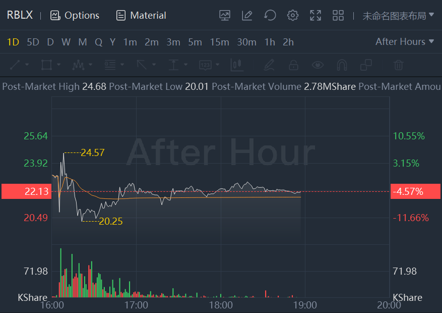 Roblox shares fell 4.6% in extended trading Tuesday.