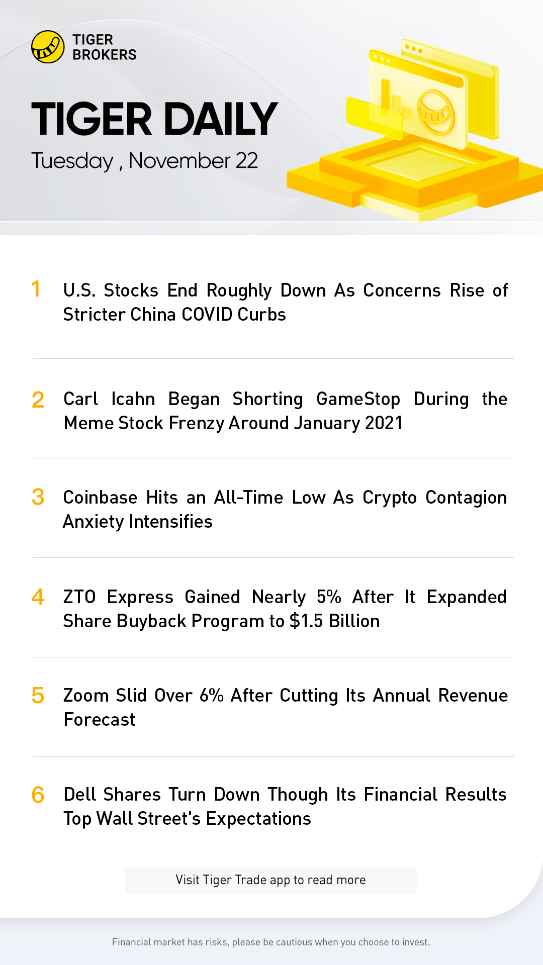 Wall Street's main indexes ended Monday roughly down on fears that China could resume stricter measures to fight COVID-19 after it said it faces its most severe test of the pandemic.