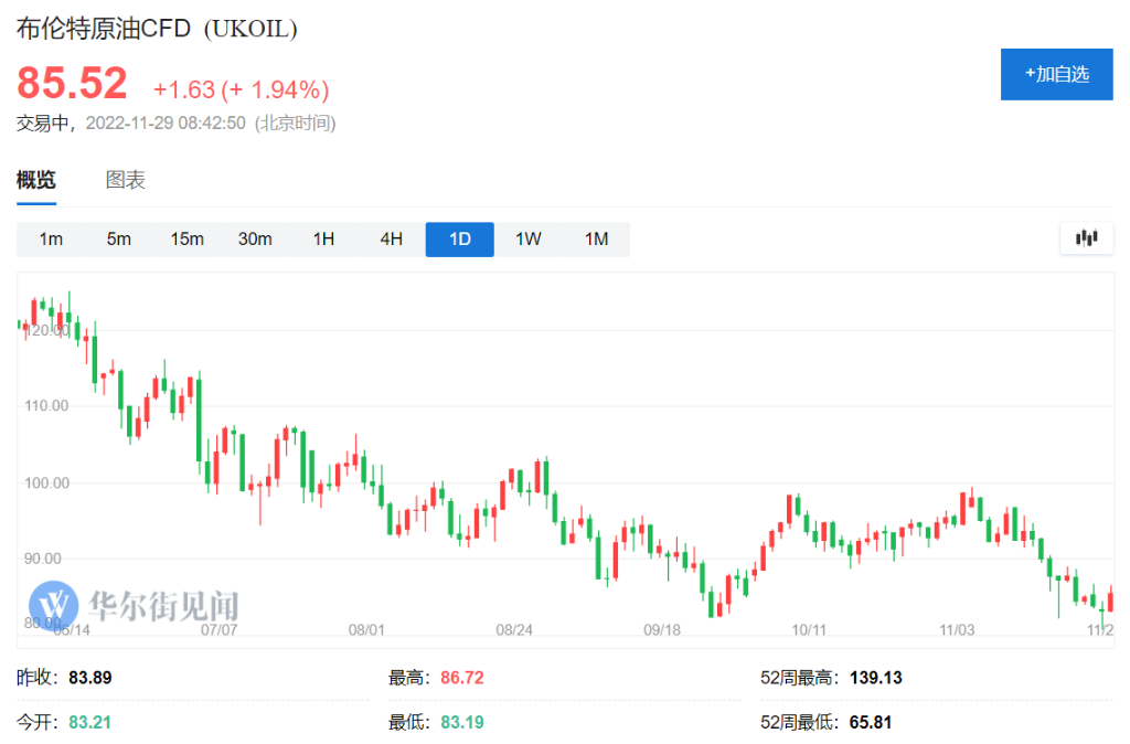 布伦特原油期货价格在今年2月份东欧地缘冲突爆发后飙涨,并在3月至6月长时间维持在110美元上方,并多次达到120美元上方。随后价格开始逐步走低。