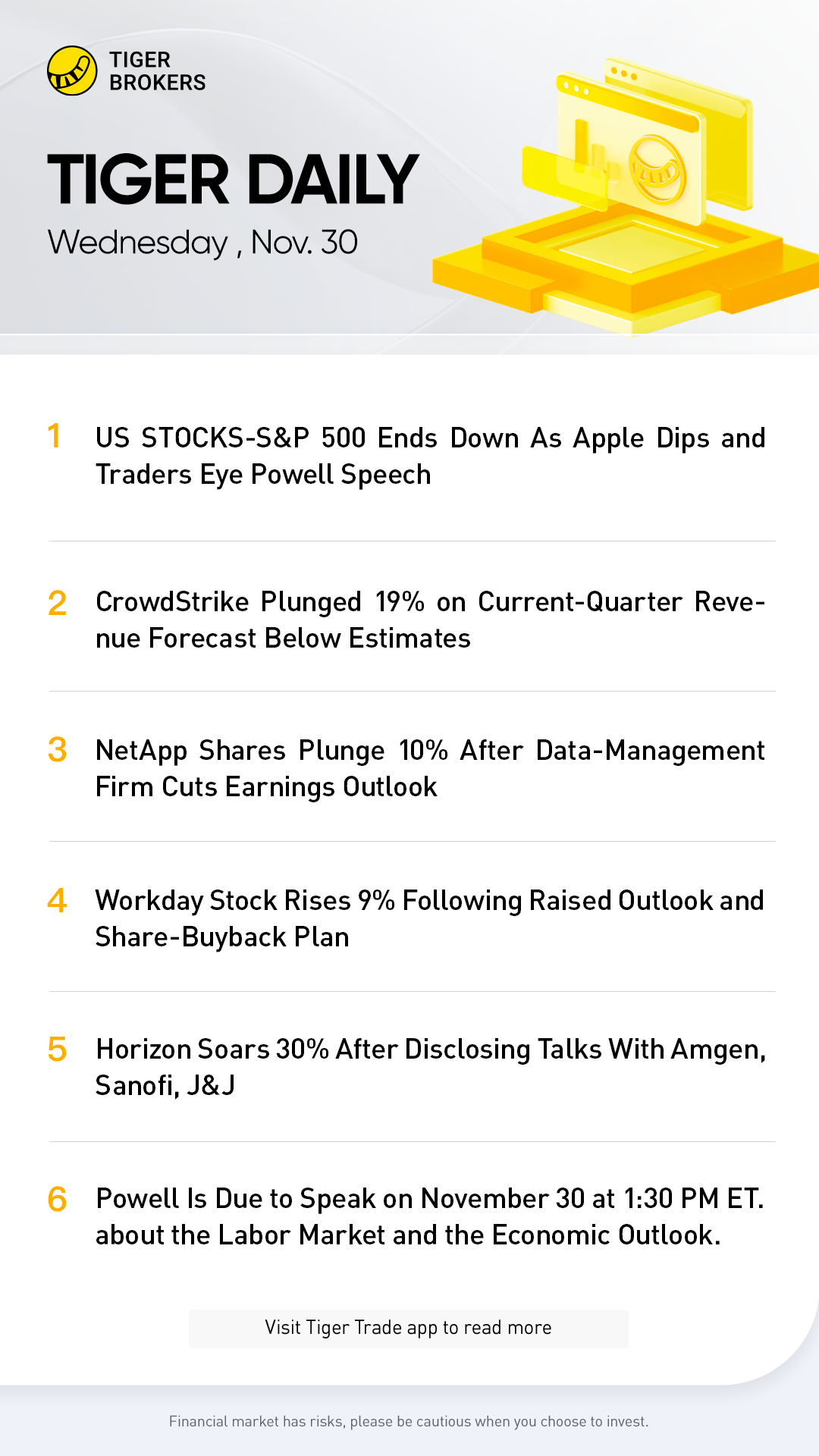 "No one is willing to buy ahead of tomorrow with Powell speaking. Everyone is nervous about what he is going to say," said Ron Saba, senior portfolio manager at Horizon Investments in Charlotte.