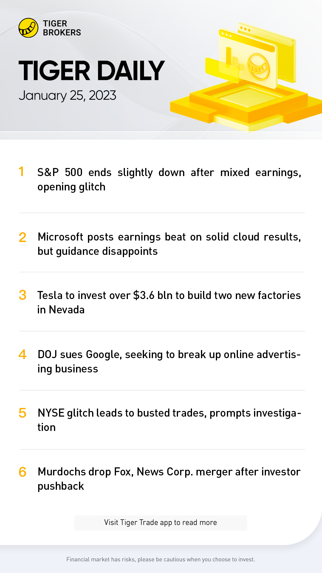 Alphabet Inc shares dipped 2.1% after the Justice Department filed a lawsuit against Google for abusing its dominance of the digital advertising business.