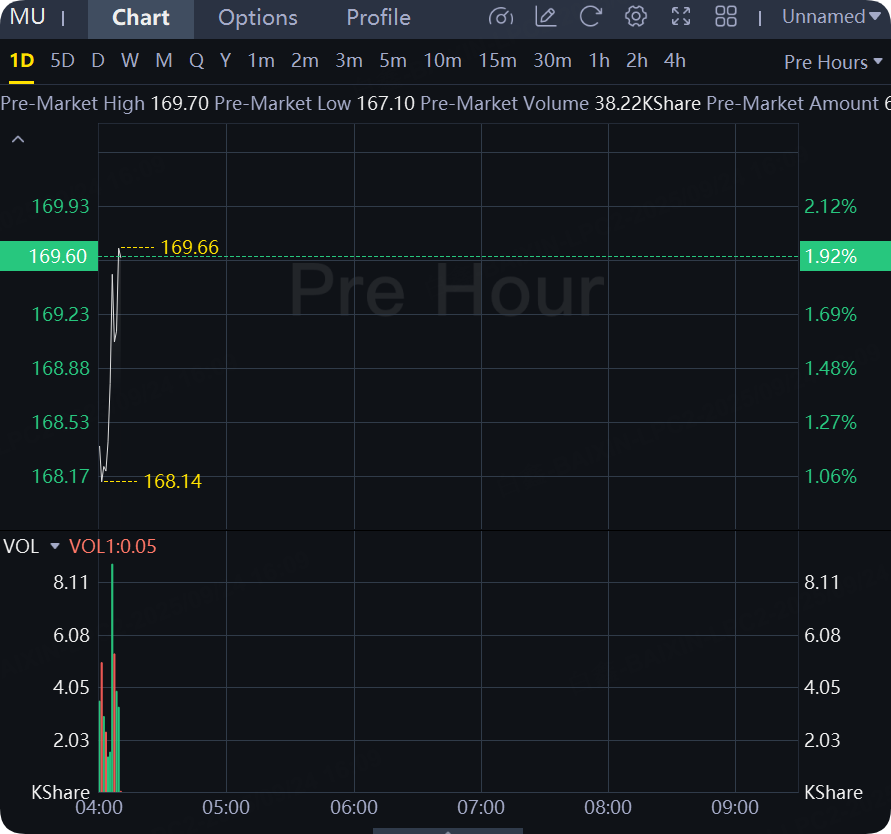 Micron shares rose 2% in premarket trading.