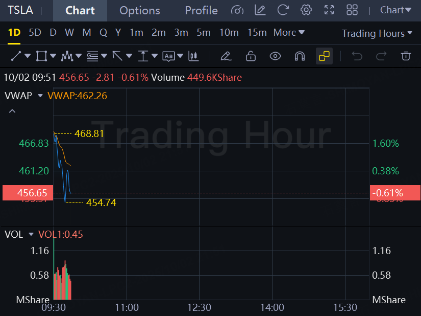 Shares of the Austin, Texas-based automaker turned negative after an initial rally of 2%.