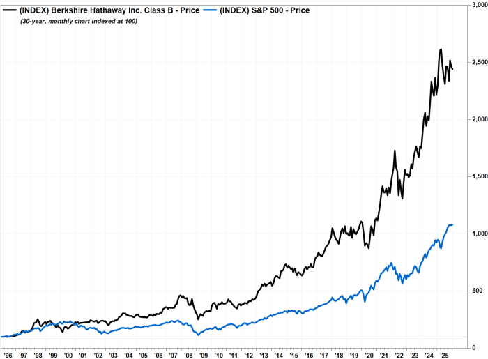 Berkshire shares underperformed the S&P 500 index SPX in 2025, with a gain of 10.9% versus a 16.4% rise for the broad-market tracker. But they extended their annual-performance win streak to 10 years, while the S&P 500 has advanced in eight of the past 10 years.
