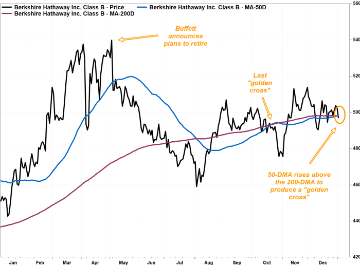 Warren Buffett is now retired, but the new boss of Berkshire Hathaway, Greg Abel, just got a bullish technical endorsement from Wall Street in the form of a "golden cross" chart pattern.