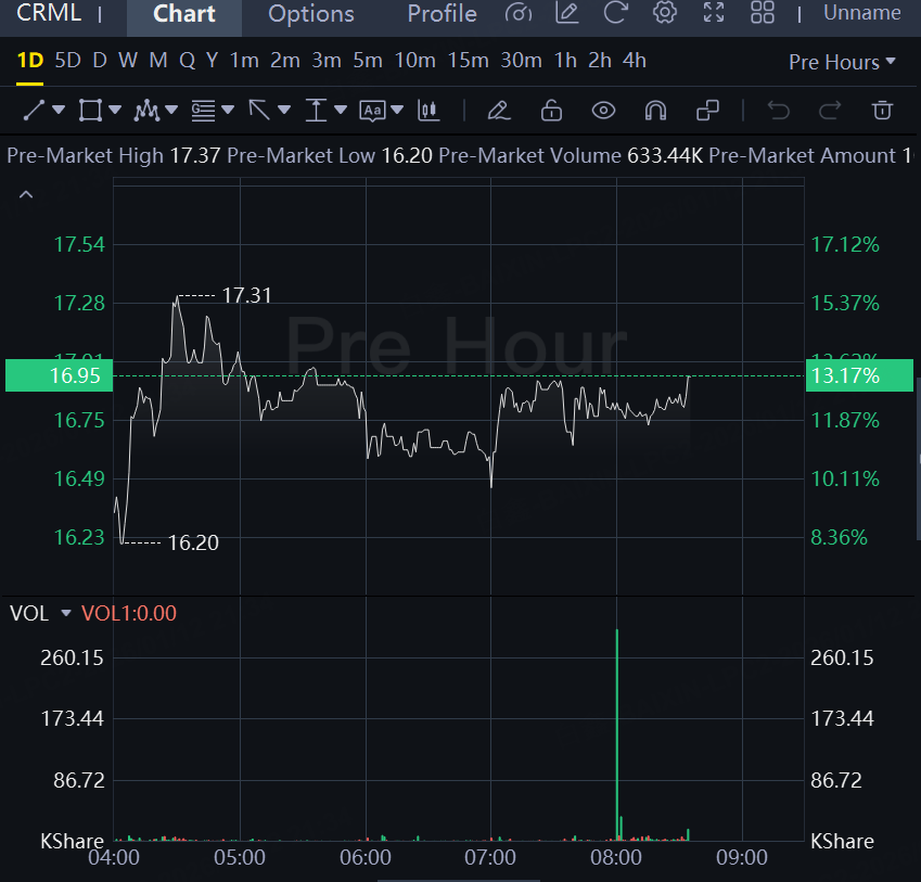 This is not the first time that Trump’s comments have had a significant impact on CRML’s stock price. Just last week, the company’s stock rallied over 70% due to geopolitical speculation surrounding Trump’s interest in Greenland.