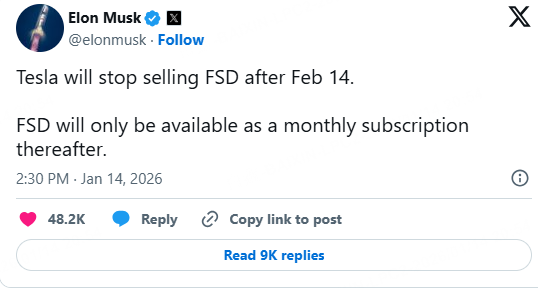 The move came after Musk announced on his social-media platform, X, that Tesla would stop selling FSD for a one-time payment and go to a subscription-only option.