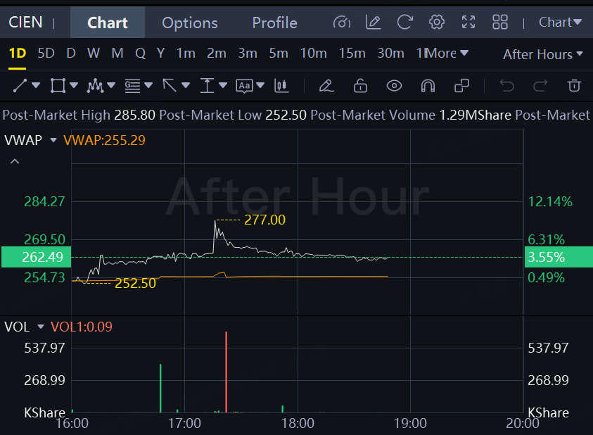 Shares of Ciena jumped 3.5% in after-hours trading on the news.