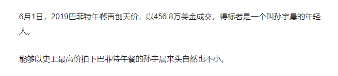 但花456萬美金拍下這一午餐的行爲,可以在全世界各地都上頭條,這一新聞價值如果被利用好,也許真的值456萬美金。